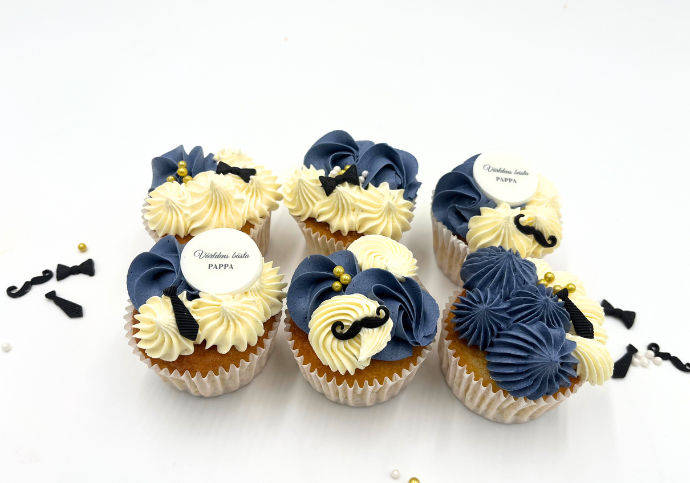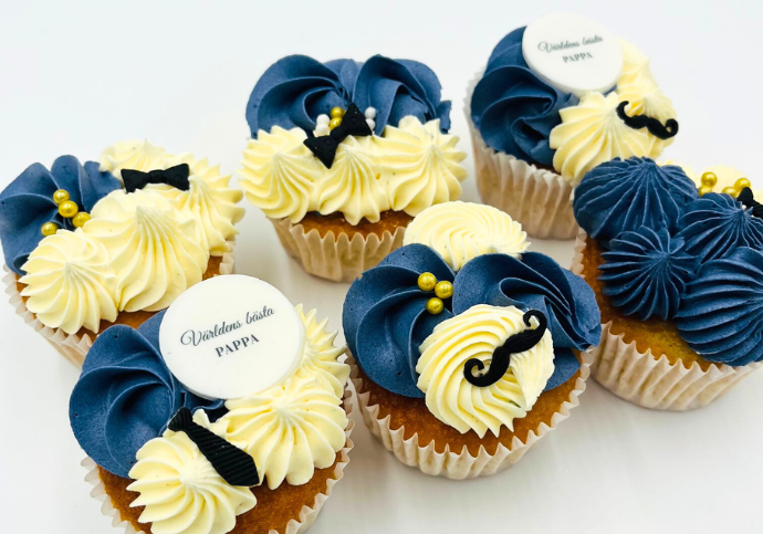 Varje cupcake är bakad med äkta Bourbonvanilj och toppad med len, luftig smörkräm. Dekorationerna är skapade med kärlek i ett stilrent Fars dag-tema, perfekt för att visa uppskattning på ett gott och personligt sätt